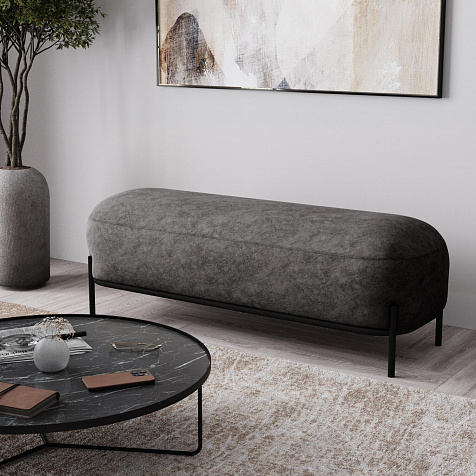 Большой пуф «Луффи» станет лаконичным украшением спальни или прихожей. Округлая форма сиденья дополнена тонким металлическим каркасом на высоких опорах, что наполнит комнату уютом и визуально облегчит интерьер. Пуф можно использовать в качестве дополнения к дивану или креслу из одноименной коллекции.