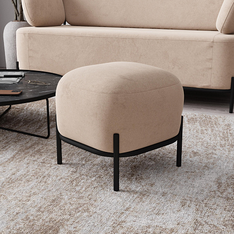 Пуф «Луффи» станет лаконичным украшением спальни или прихожей. Округлая форма сиденья дополнена тонким металлическим каркасом на высоких опорах, что наполнит комнату уютом и визуально облегчит интерьер. Пуф можно использовать в качестве дополнения к дивану или креслу из одноименной коллекции.
