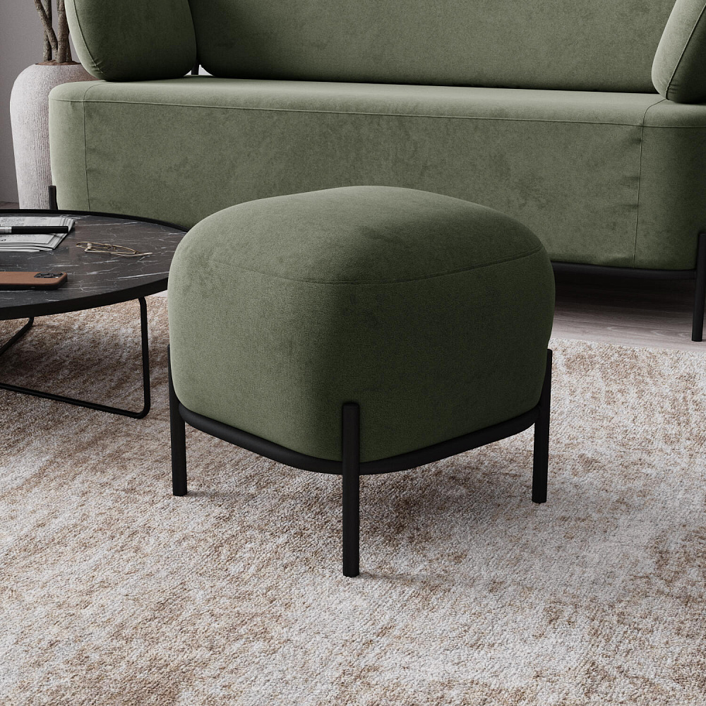 Пуф «Луффи» станет лаконичным украшением спальни или прихожей. Округлая форма сиденья дополнена тонким металлическим каркасом на высоких опорах, что наполнит комнату уютом и визуально облегчит интерьер. Пуф можно использовать в качестве дополнения к дивану или креслу из одноименной коллекции.