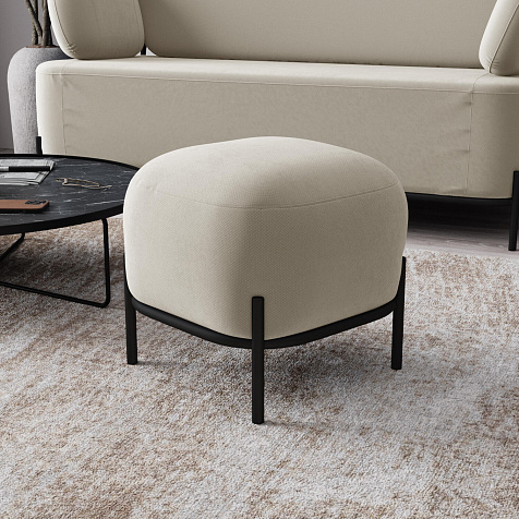 Пуф «Луффи» станет лаконичным украшением спальни или прихожей. Округлая форма сиденья дополнена тонким металлическим каркасом на высоких опорах, что наполнит комнату уютом и визуально облегчит интерьер. Пуф можно использовать в качестве дополнения к дивану или креслу из одноименной коллекции.