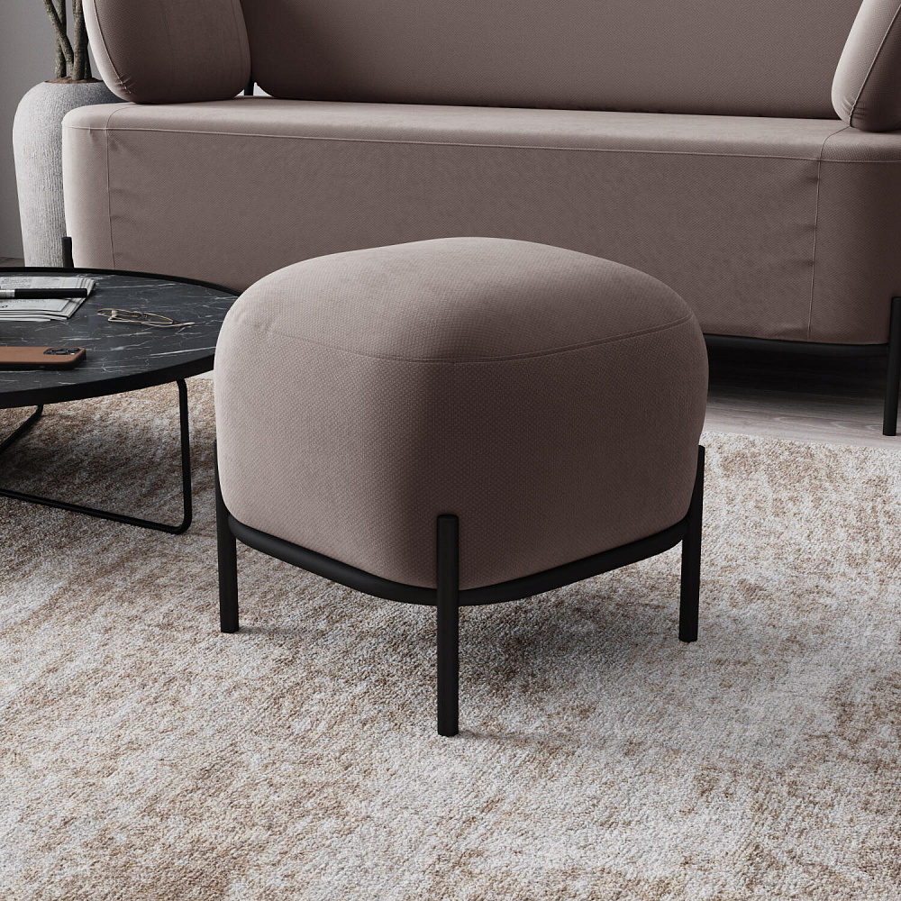 Пуф «Луффи» станет лаконичным украшением спальни или прихожей. Округлая форма сиденья дополнена тонким металлическим каркасом на высоких опорах, что наполнит комнату уютом и визуально облегчит интерьер. Пуф можно использовать в качестве дополнения к дивану или креслу из одноименной коллекции.