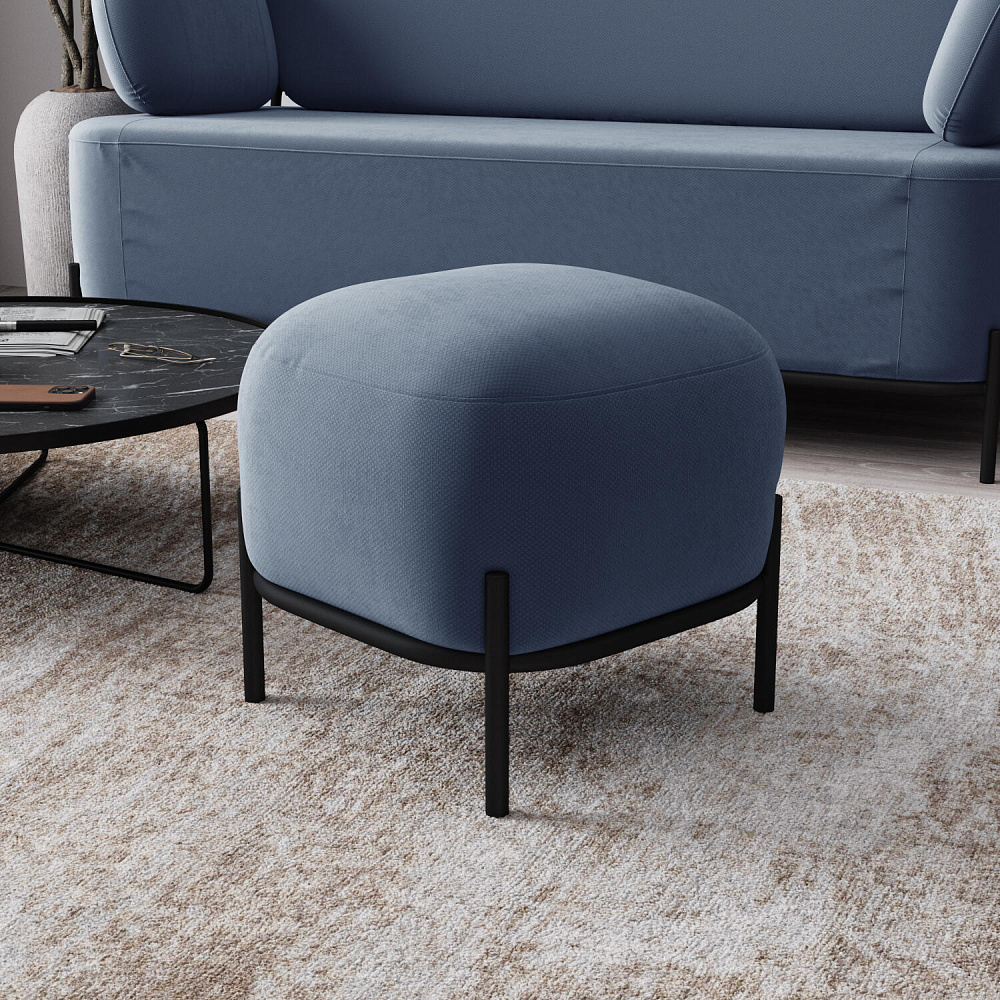 Пуф «Луффи» станет лаконичным украшением спальни или прихожей. Округлая форма сиденья дополнена тонким металлическим каркасом на высоких опорах, что наполнит комнату уютом и визуально облегчит интерьер. Пуф можно использовать в качестве дополнения к дивану или креслу из одноименной коллекции.