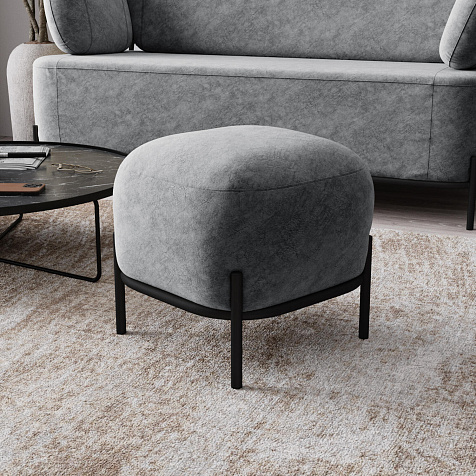 Пуф «Луффи» станет лаконичным украшением спальни или прихожей. Округлая форма сиденья дополнена тонким металлическим каркасом на высоких опорах, что наполнит комнату уютом и визуально облегчит интерьер. Пуф можно использовать в качестве дополнения к дивану или креслу из одноименной коллекции.