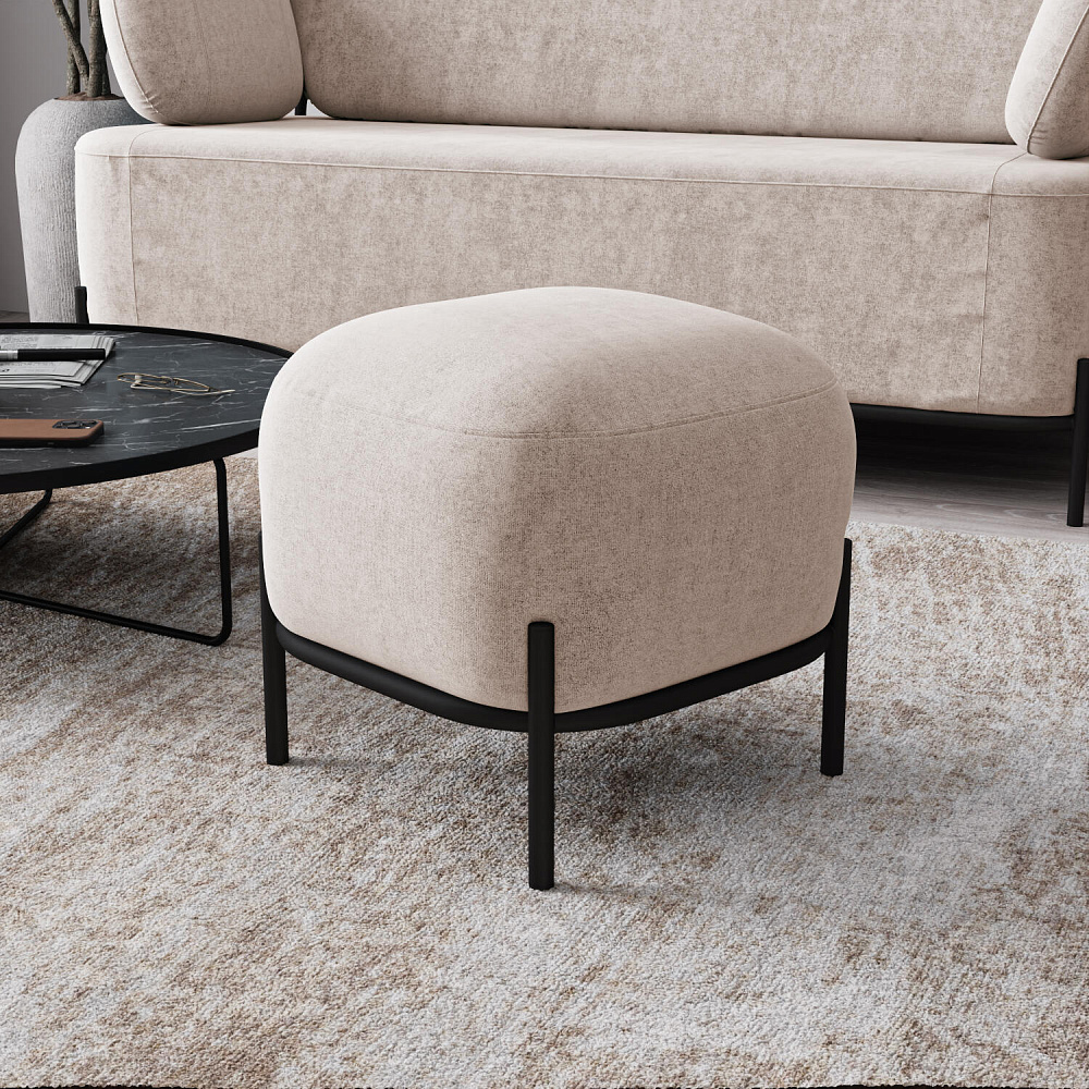 Пуф «Луффи» станет лаконичным украшением спальни или прихожей. Округлая форма сиденья дополнена тонким металлическим каркасом на высоких опорах, что наполнит комнату уютом и визуально облегчит интерьер. Пуф можно использовать в качестве дополнения к дивану или креслу из одноименной коллекции.