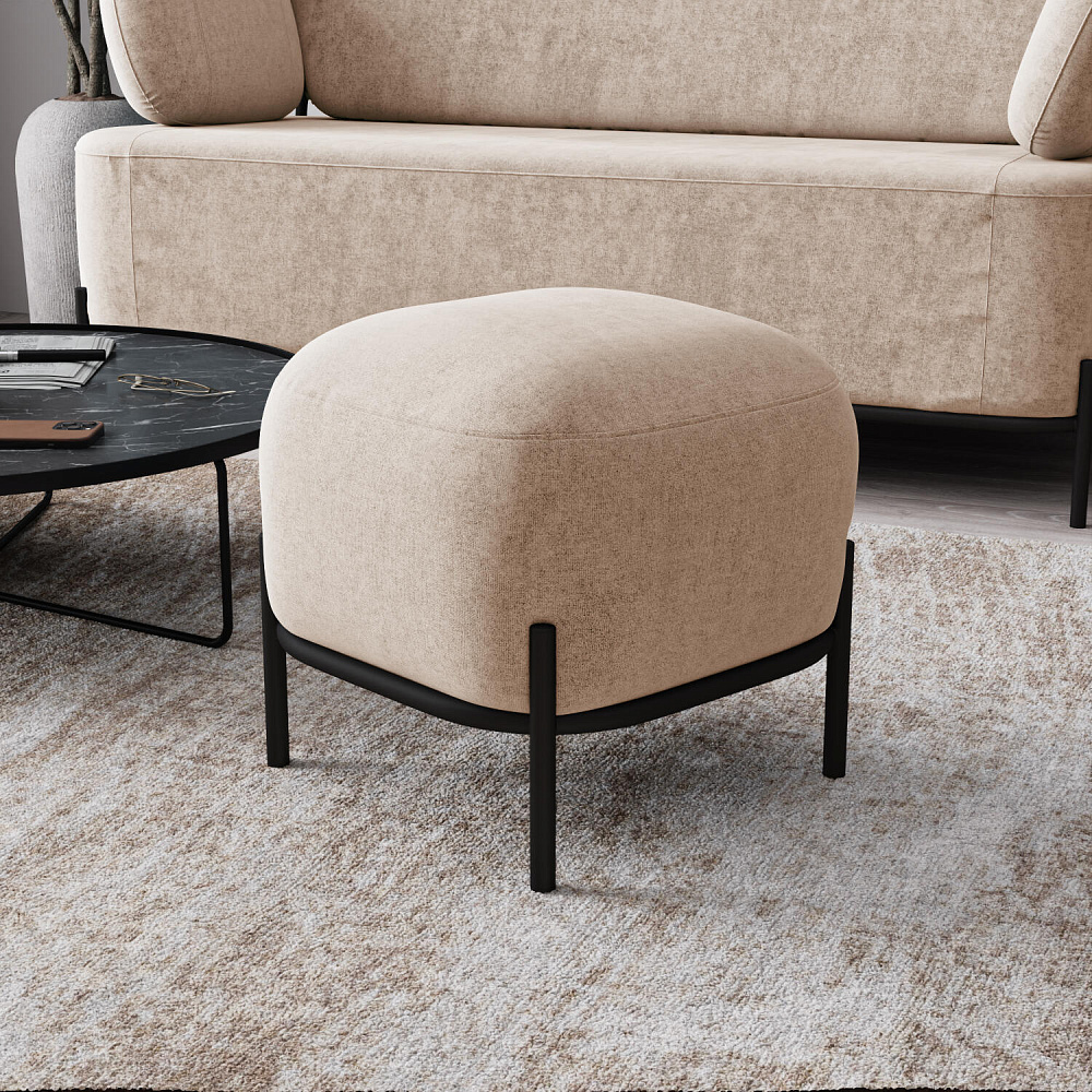 Пуф «Луффи» станет лаконичным украшением спальни или прихожей. Округлая форма сиденья дополнена тонким металлическим каркасом на высоких опорах, что наполнит комнату уютом и визуально облегчит интерьер. Пуф можно использовать в качестве дополнения к дивану или креслу из одноименной коллекции.