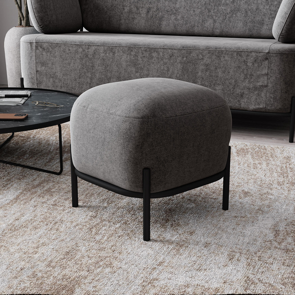 Пуф «Луффи» станет лаконичным украшением спальни или прихожей. Округлая форма сиденья дополнена тонким металлическим каркасом на высоких опорах, что наполнит комнату уютом и визуально облегчит интерьер. Пуф можно использовать в качестве дополнения к дивану или креслу из одноименной коллекции.