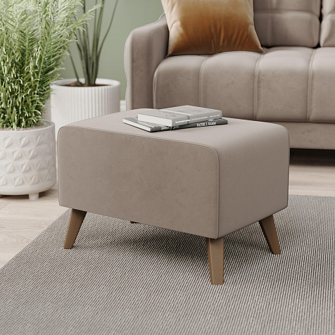 Пуф «Бремен» исполнен в популярном скандинавском стиле. Высокие опоры и приятная на ощупь однотонная обивка смотрятся эффектно.