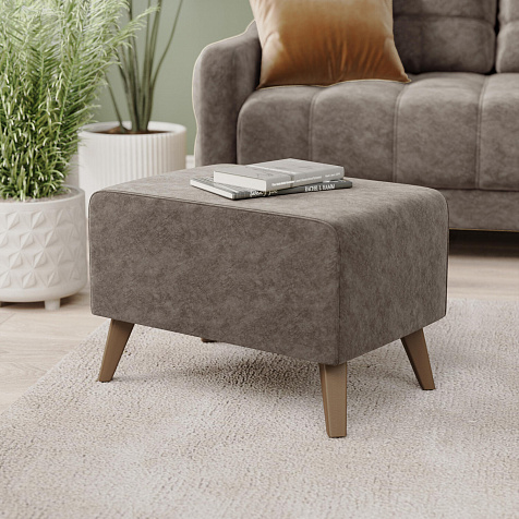 Пуф «Бремен» исполнен в популярном скандинавском стиле. Высокие опоры и приятная на ощупь однотонная обивка смотрятся эффектно.