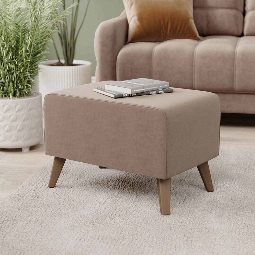 Пуф «Бремен» исполнен в популярном скандинавском стиле. Высокие опоры и приятная на ощупь однотонная обивка смотрятся эффектно.