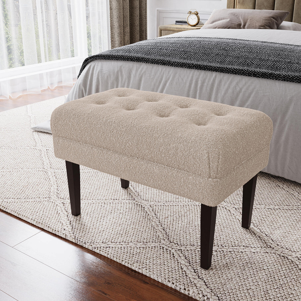 Банкетка «Шарлотта» идеально дополнит композицию вашей спальни, прихожей или гардеробной, станет удобным и функциональным аксессуаром. Основное изящество банкетке придают стачные элементы обивки и утяжка с декоративными пуговицами на мягком сидении, выполненные с использованием микровелюра. Массивные берёзовые ножки без труда выдерживают высокую нагрузку.