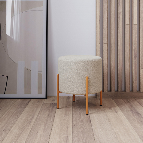 Обивка: букле Soul (100% полиэстер), плотность ткани — 570 г/м2, устойчивость к истиранию — 53 000 циклов по тесту Мартиндейла.