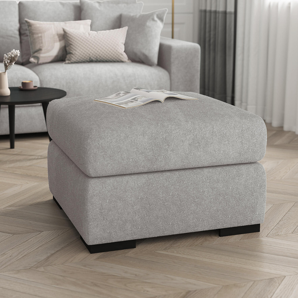 Мягкий пуф «Юта» станет удобным дополнением к дивану из одноименной серии. Обивка выполнена из приятного на ощупь букле с неоднородной зернистой фактурой. Минималистичный дизайн модели дополнен невысокими деревянными опорами в цвете «венге». Сиденье закреплено на липучках. Чехол можно снять с сиденья для удобной очистки при появлении загрязнений.