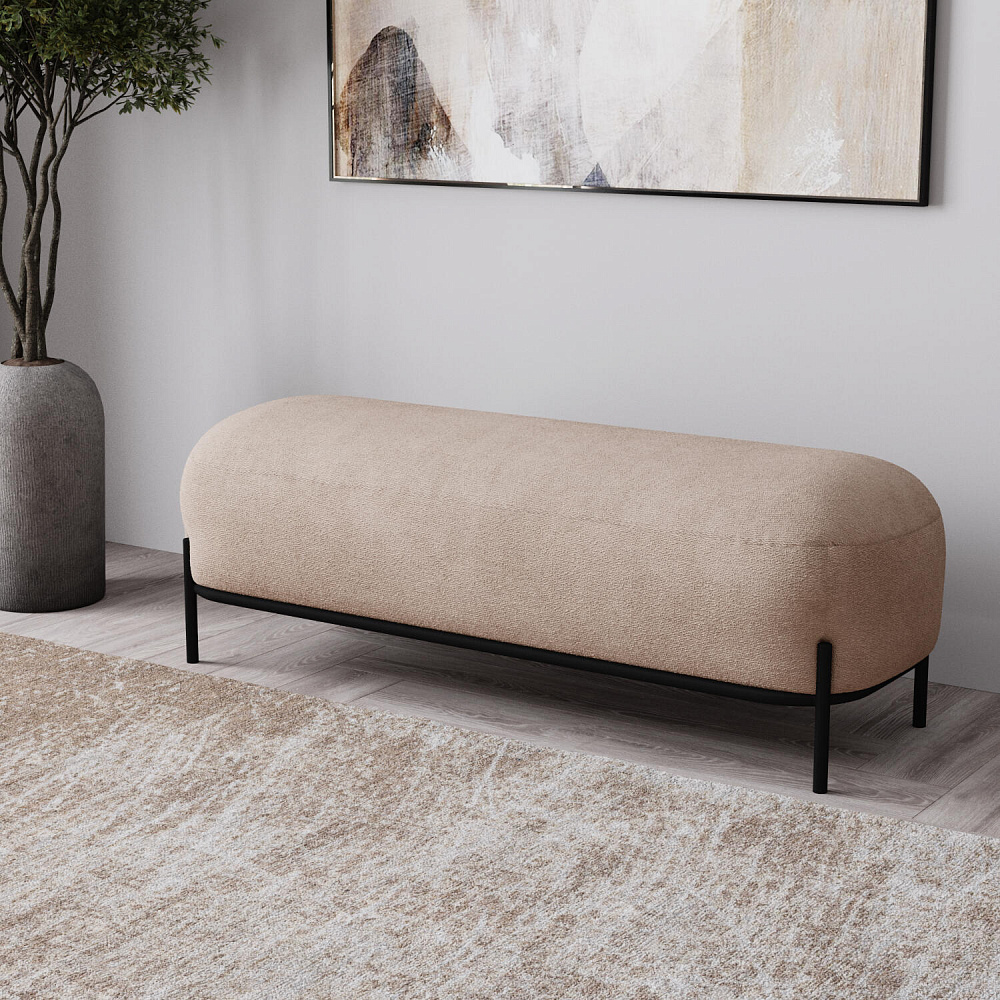 Большой пуф «Луффи» станет лаконичным украшением спальни или прихожей. Округлая форма сиденья дополнена тонким металлическим каркасом на высоких опорах, что наполнит комнату уютом и визуально облегчит интерьер. Пуф можно использовать в качестве дополнения к дивану или креслу из одноименной коллекции.