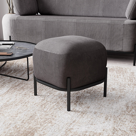 Пуф «Луффи» станет лаконичным украшением спальни или прихожей. Округлая форма сиденья дополнена тонким металлическим каркасом на высоких опорах, что наполнит комнату уютом и визуально облегчит интерьер. Пуф можно использовать в качестве дополнения к дивану или креслу из одноименной коллекции.