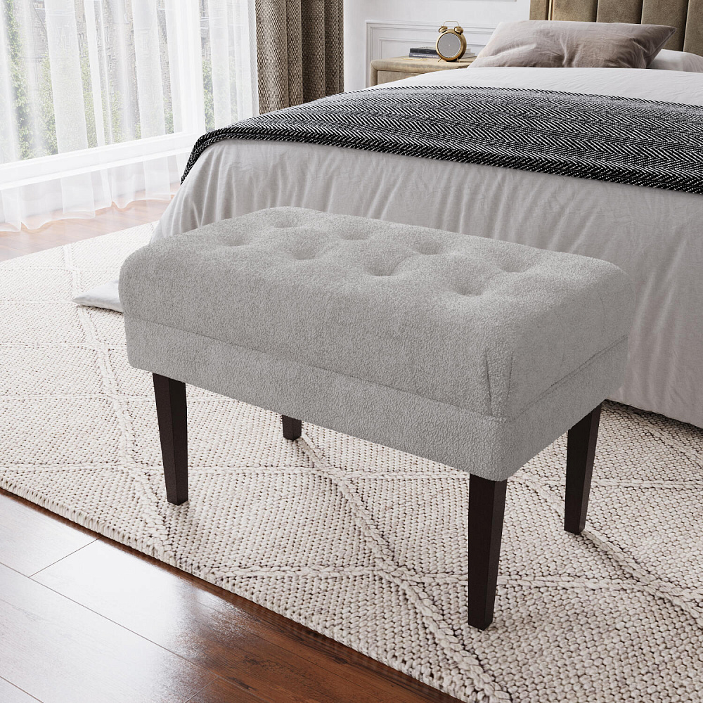 Банкетка «Шарлотта» идеально дополнит композицию вашей спальни, прихожей или гардеробной, станет удобным и функциональным аксессуаром. Основное изящество банкетке придают стачные элементы обивки и утяжка с декоративными пуговицами на мягком сидении, выполненные с использованием микровелюра. Массивные берёзовые ножки без труда выдерживают высокую нагрузку.