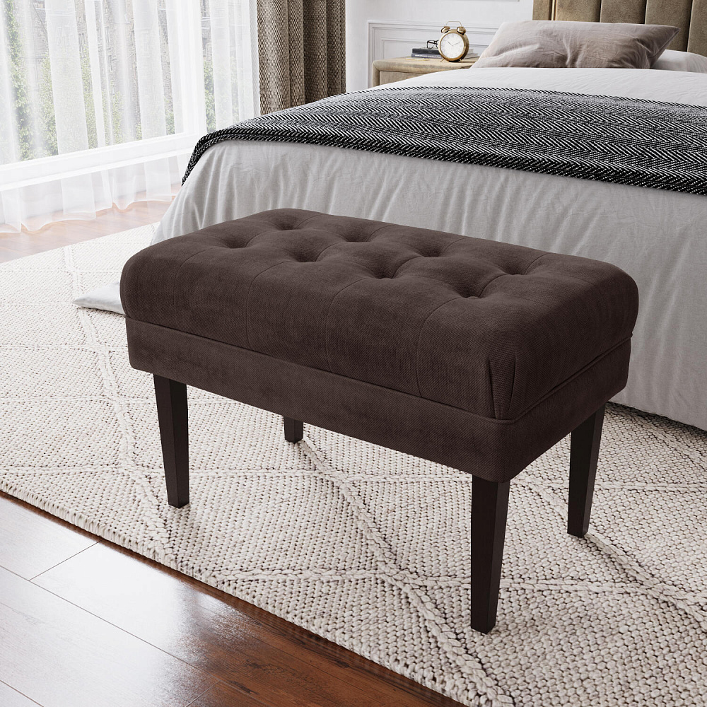 Банкетка «Шарлотта» идеально дополнит композицию вашей спальни, прихожей или гардеробной, станет удобным и функциональным аксессуаром. Основное изящество банкетке придают стачные элементы обивки и утяжка с декоративными пуговицами на мягком сидении, выполненные с использованием велюра. Массивные берёзовые ножки без труда выдерживают высокую нагрузку.