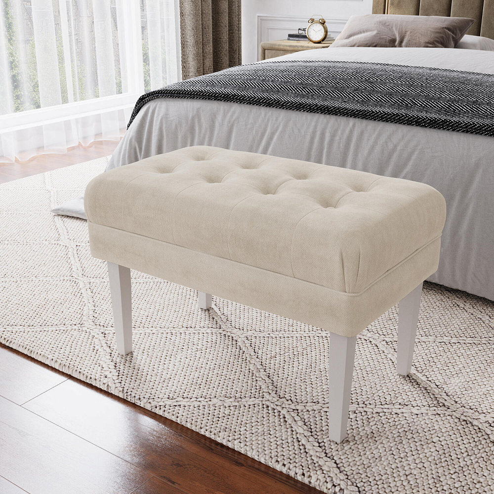 Банкетка «Шарлотта» идеально дополнит композицию вашей спальни, прихожей или гардеробной, станет удобным и функциональным аксессуаром. Основное изящество банкетке придают стачные элементы обивки и утяжка с декоративными пуговицами на мягком сидении, выполненные с использованием велюра. Массивные берёзовые ножки без труда выдерживают высокую нагрузку.