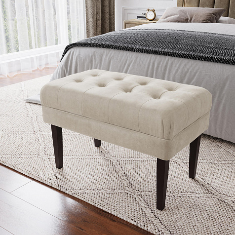 Банкетка «Шарлотта» идеально дополнит композицию вашей спальни, прихожей или гардеробной, станет удобным и функциональным аксессуаром. Основное изящество банкетке придают стачные элементы обивки и утяжка с декоративными пуговицами на мягком сидении, выполненные с использованием микровелюра. Массивные берёзовые ножки без труда выдерживают высокую нагрузку.
