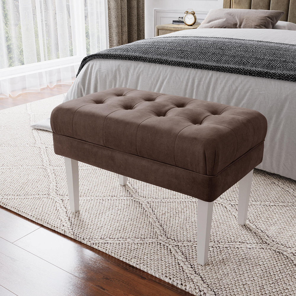 Банкетка «Шарлотта» идеально дополнит композицию вашей спальни, прихожей или гардеробной, станет удобным и функциональным аксессуаром. Основное изящество банкетке придают стачные элементы обивки и утяжка с декоративными пуговицами на мягком сидении, выполненные с использованием микровелюра. Массивные берёзовые ножки без труда выдерживают высокую нагрузку.