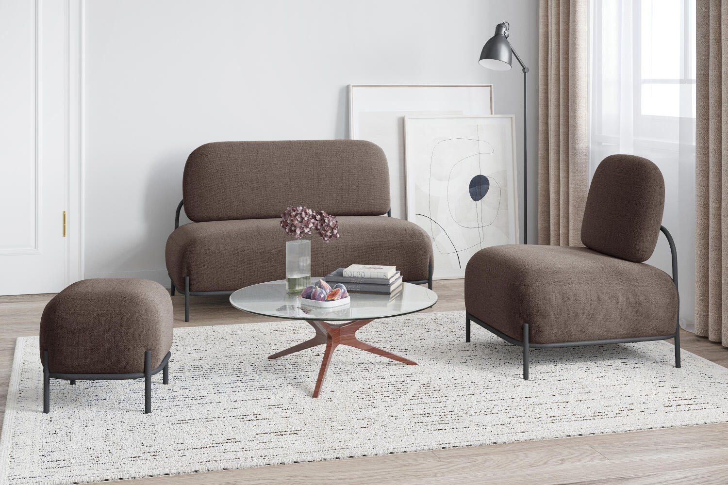 Пуф «Луффи» станет лаконичным украшением спальни или прихожей. Округлая форма сиденья дополнена тонким металлическим каркасом на высоких опорах, что наполнит комнату уютом и визуально облегчит интерьер. Пуф можно использовать в качестве дополнения к дивану или креслу из одноименной коллекции.