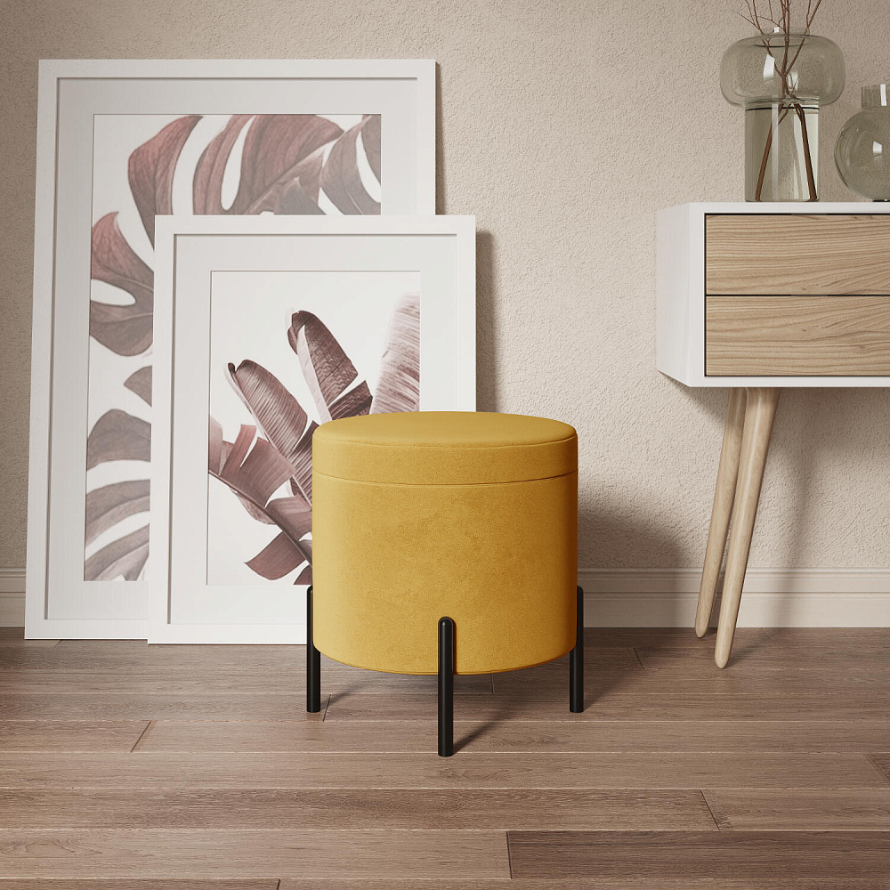 Пуф на ножках «Гранд» — яркое сочетание современных материалов и оригинального дизайна. Обивка выполнена из мягкого, приятного на ощупь велюра. Внутри пуфа есть закрытое отделение для самых разных вещей. Модель украсит спальню, гостиную или прихожую в любом современном стиле.