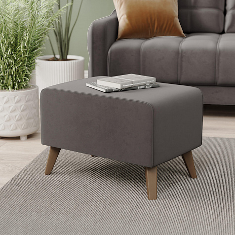 Пуф «Бремен» исполнен в популярном скандинавском стиле. Высокие опоры и приятная на ощупь однотонная обивка смотрятся эффектно.