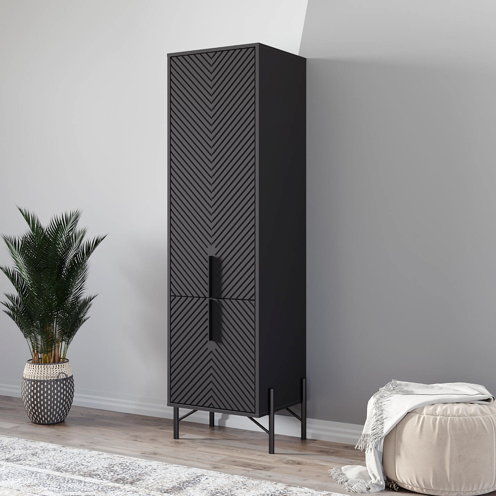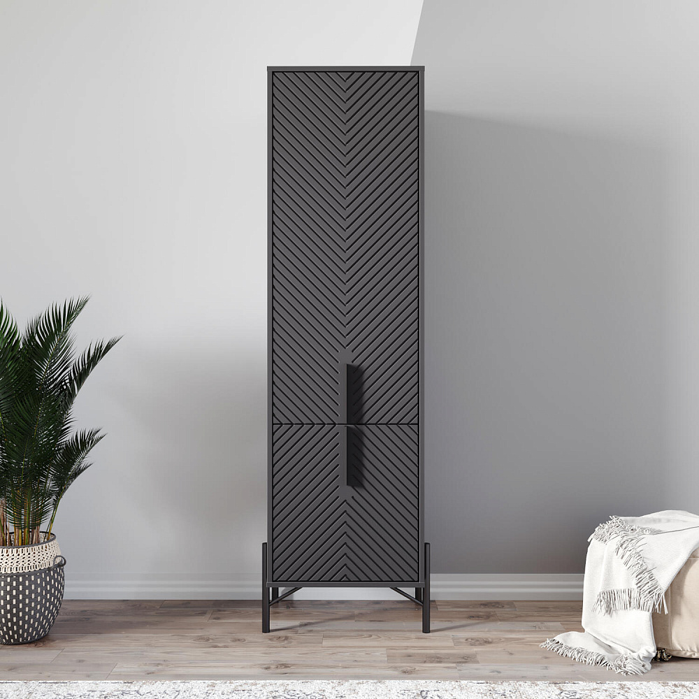Шкаф-пенал «Монтер-Прадо» с двумя отделениями — компактное решения для хранения вещей в гостиной. Матовый корпус в сочетании с фрезерованным фасадом в цвет корпуса дополнен высокими металлическими опорами. Такой шкаф станет украшением современной гостиной, а в составе мебельной композиции — частью стильной зоны отдыха.