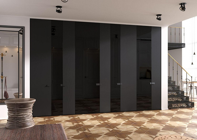 Шкаф из коллекции “Тейт” (арт. 044), большой стильный черный шкаф с распашными фасадами — отличный выбор для прихожей большой семьи или большого дома. Девятидверная конструкция с распашными дверями благодаря встроенному формату рационально заполняет внушительное место, не загромождая пространство и создавая очень вместительное место хранения, которое можно использовать не только для верхней одежды и обуви, но и для множества других вещей.