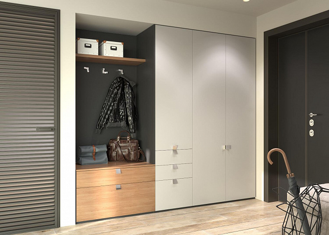 Благодаря смене сезонов года, у нас достаточно много одежды, которую необходимо хранить. Поэтому наличие вместительно шкафа в прихожей всегда актуально. В Ателье мебели Mr.Doors вся мебель изготовляется на заказ по индивидуальным размерам. Вы сами можете выбирать сколько будет крючков для одежды, полок или ящиков. Ждем вас!