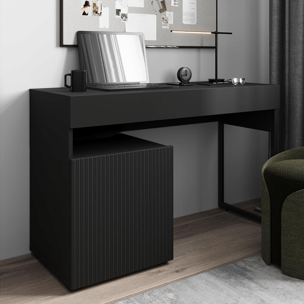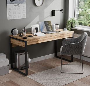Письменный стол «Линкольн» с ящиком станет незаменимой частью уютного рабочего уголка. Модель имеет прямоугольную столешницу на двух металлических ножках с одной стороны, другой край стола крепится к крышке тумбы арт. км0558, км0560 или км0561. Лаконичный дизайн без видимой фурнитуры дополнен металлической черной опорой. Ящик станет удобным местом для хранения множества вещей.