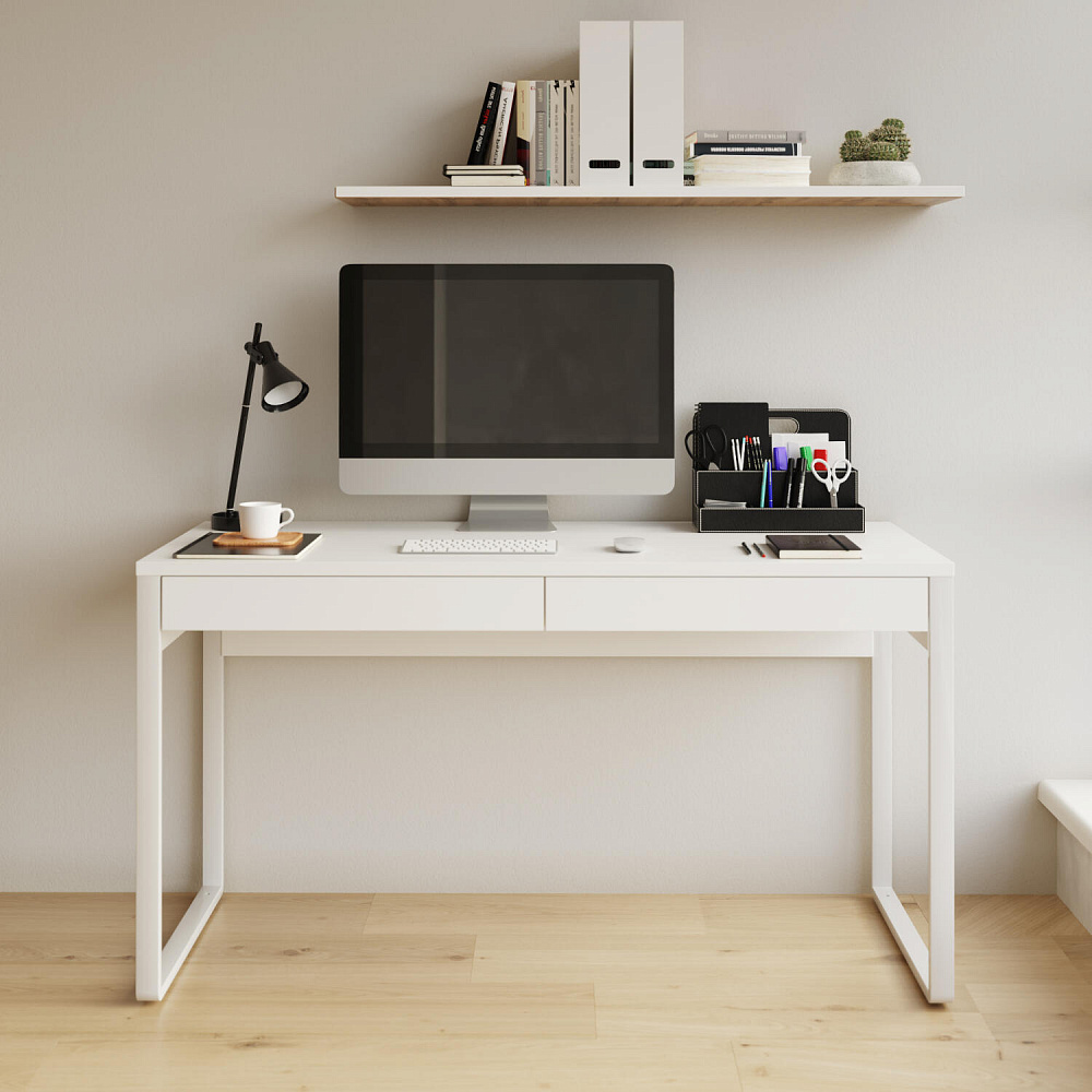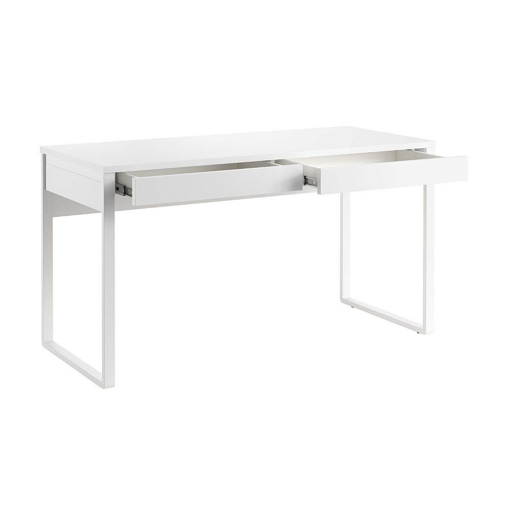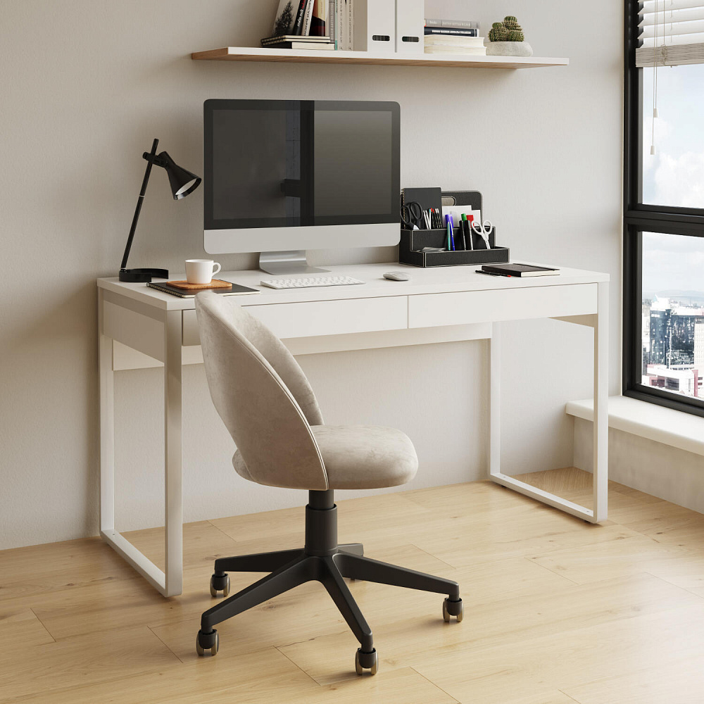 Широкий письменный стол «Кассия» с двумя ящиками станет центральной частью уютного домашнего или офисного кабинета. Современный и лаконичный дизайн модели выполнен в универсальном белом оттенке, который подходит к самым разным стилям оформления.