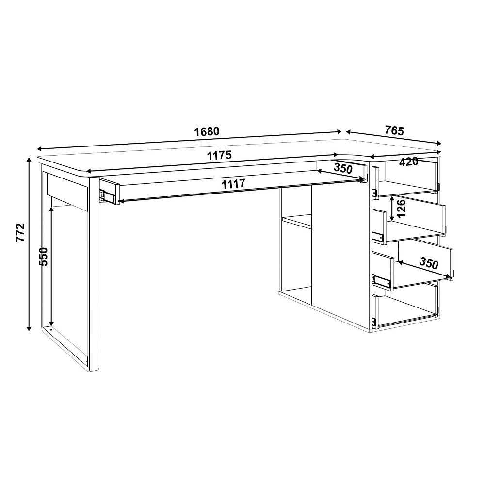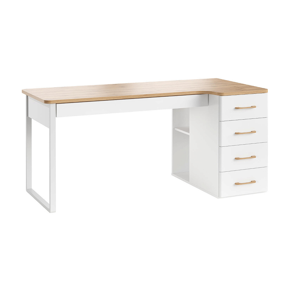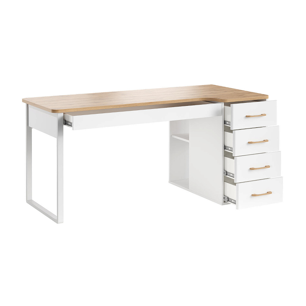 - Выдвижные ящики. Под столешницей находится широкий ящик для хранения канцелярских принадлежностей, сбоку — ещё четыре ящика для хранения документов и личных вещей.