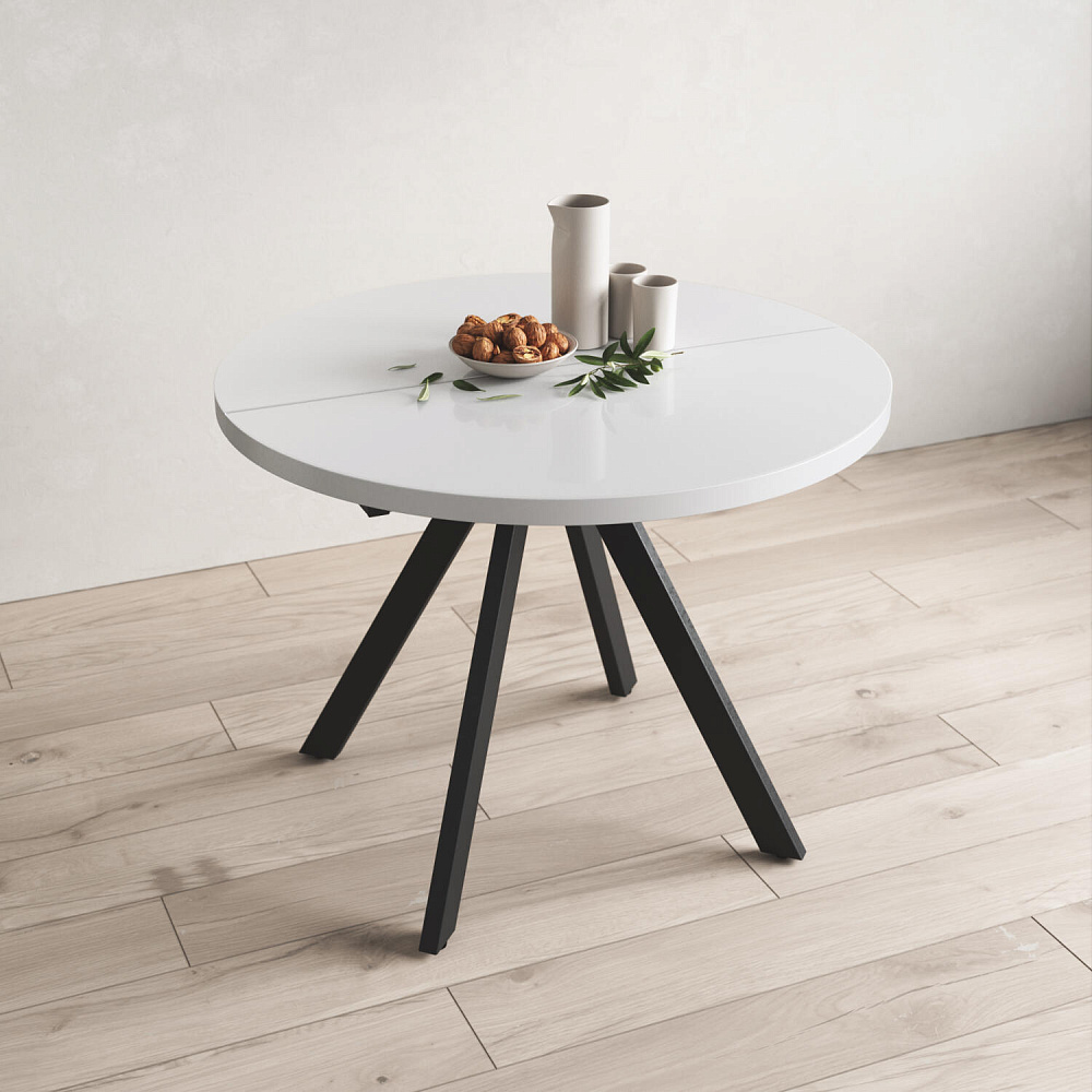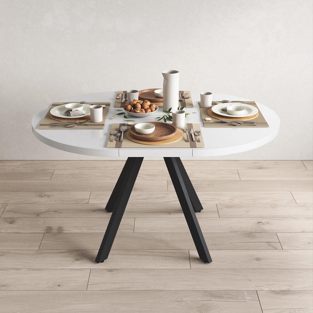 Круглый раздвижной стол DANTE для кухни, столовой или гостиной в стиле лофт обеспечит комфортную посадку от 8 до 10 человек. Практичная поверхность не подвержена усыханию, устойчива к температурным воздействиям. Механизм раскладывания со вставкой-бабочкой позволит быстро увеличить базовую ширину столешницы со 100 до 135 см.