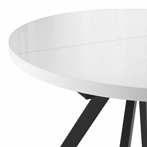 - Круглая столешница. Поверхность стола изготовлена из ламинированной древесно-стружечной плиты, которая отличается практичностью и долговечностью. Поверх установлено закаленное стекло.