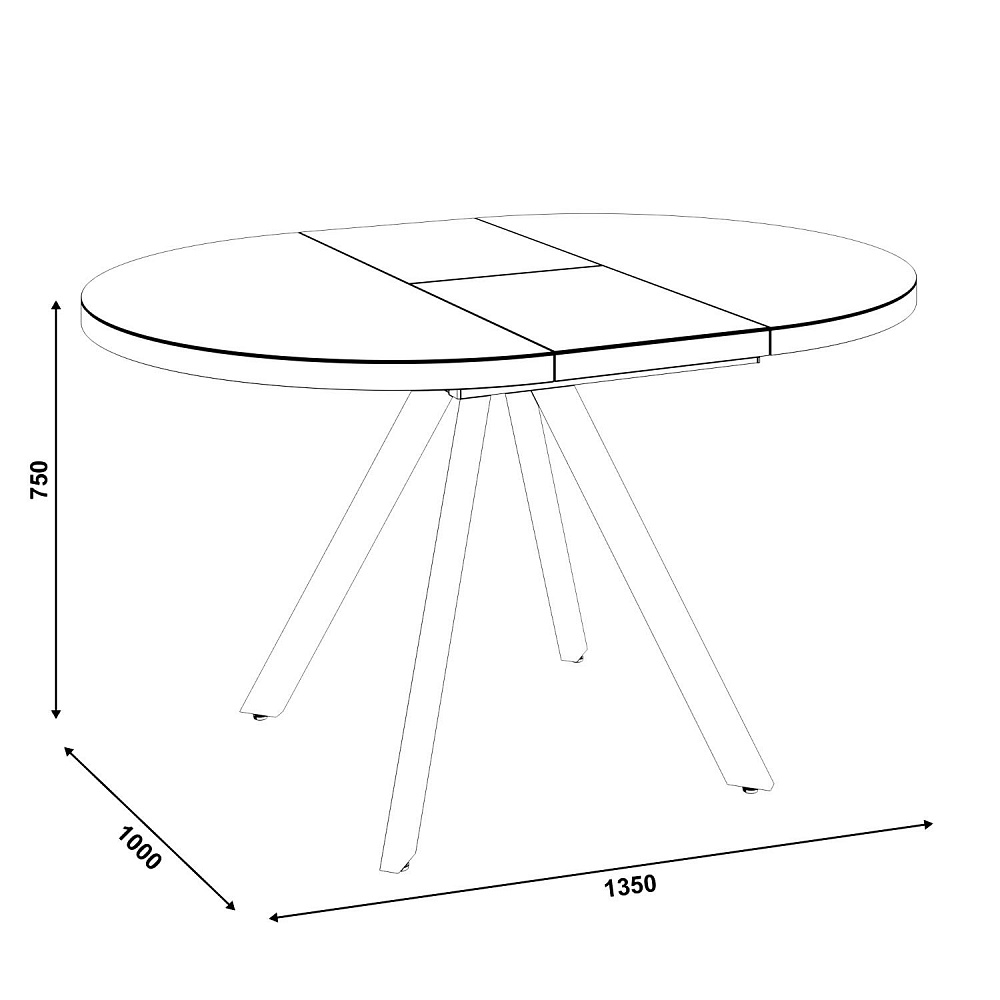 Габариты стола в разложенном виде: В750 х Ш1350 х Г1000 мм.
