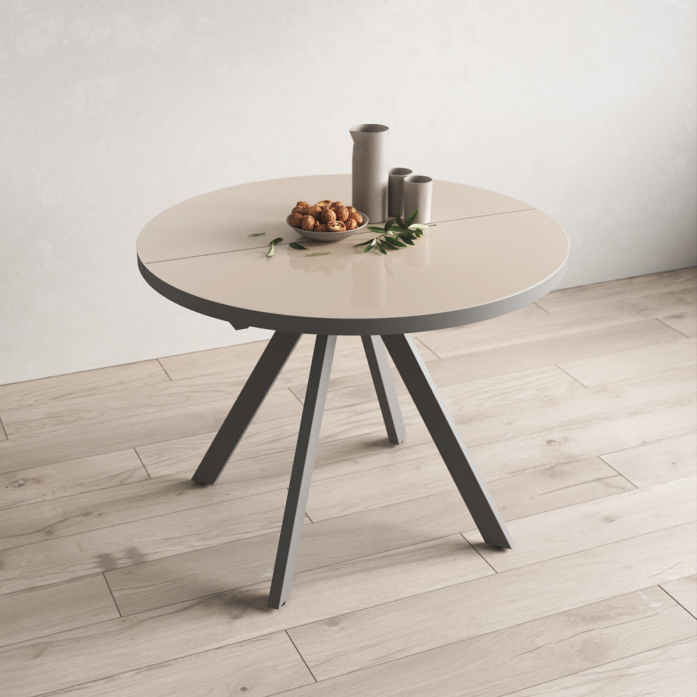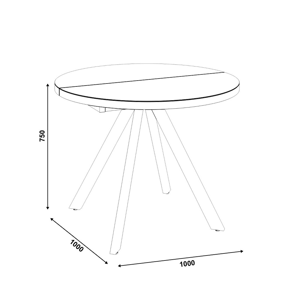 Круглый раздвижной стол DANTE для кухни, столовой или гостиной в стиле лофт обеспечит комфортную посадку от 8 до 10 человек. Практичная поверхность не подвержена усыханию, устойчива к температурным воздействиям. Механизм раскладывания со вставкой-бабочкой позволит быстро увеличить базовую ширину столешницы со 100 до 135 см.