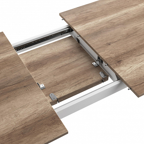 - Раздвижной механизм «бабочка». Боковины столешницы легко раздвигаются в стороны, из подстолья вынимаются и разворачиваются две вставки, в результате чего поверхность стола увеличивается на треть.
