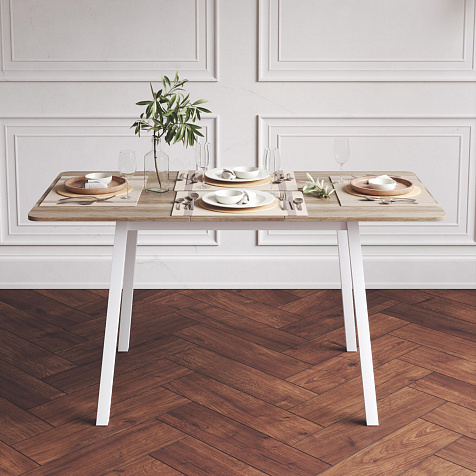 Обеденный стол WINK-110 отлично сочетается с современным интерьером столовой или кухни. Практичная поверхность устойчива к температурным воздействиям. Механизм раскладывания со вставкой-бабочкой позволяет быстро увеличить базовую ширину столешницы со 110 до 142 см. Такого размера достаточно, чтобы с комфортом посадить за стол от 6 до 8 человек.