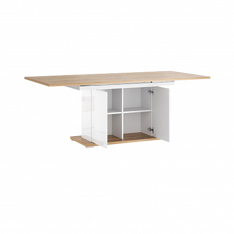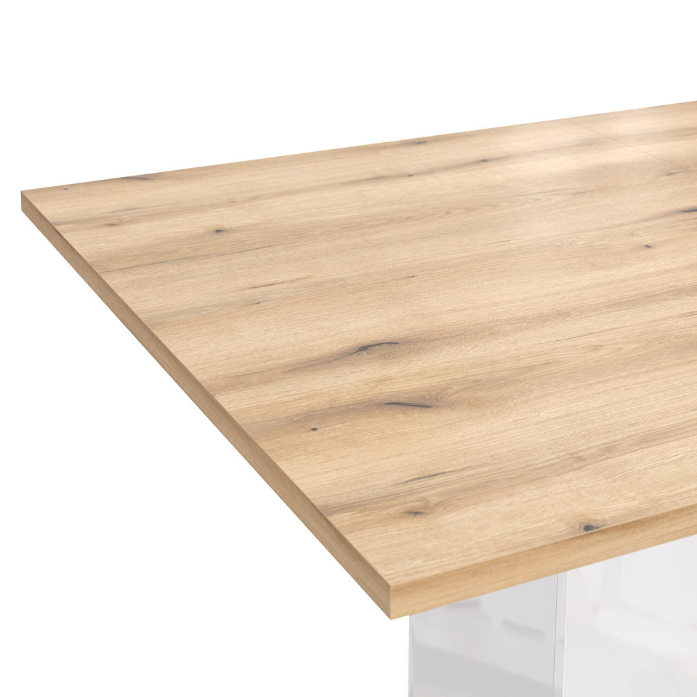 Трансформируемая столешница. В подстолье предусмотрены направляющие и дополнительная вставка шириной 50 см, с помощью которых увеличивается общая ширина столешницы.