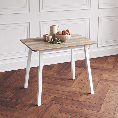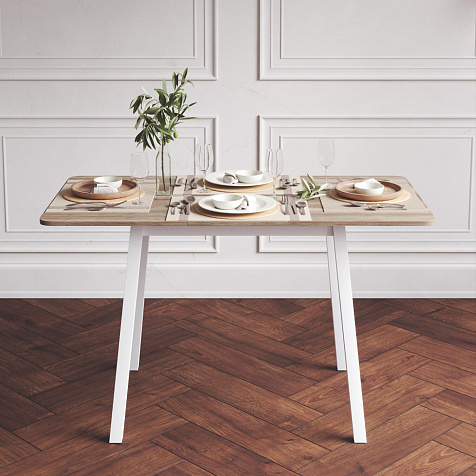 Компактный стол WINK-94 подойдет для создания уютной обеденной зоны в современной кухне или гостиной. Ширина стола — 94 см, поэтому он не займет много места и подойдет для размещения в небольшой кухне. Не смотря на свои габариты, ширину стола можно увеличить до 126 см, благодаря механизму со вставкой-бабочкой. Такого размера достаточно, чтобы с комфортом посадить за стол до 4 человек.