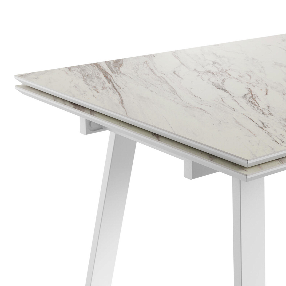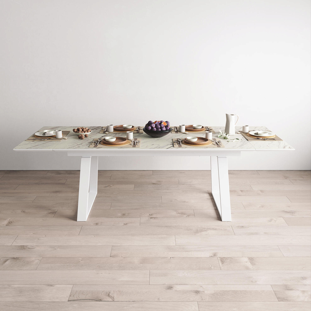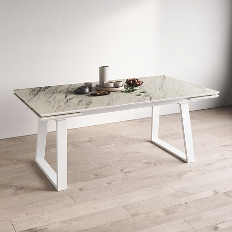 Раздвижной обеденный стол «Чарльз» станет украшением обеденной зоны. Столешница с покрытием из натуральной керамики смотрится эффектно и дорого. Практичность и функциональность не уступает шикарному дизайну. Поверхность столешницы способна выдерживать удары и не подвержена появлению царапин. Можно ставить горячие кастрюли и сковороды не опасаясь повредить поверхность.