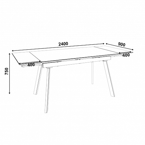 Габариты стола в разложенном виде (ВхШхГ): 75 х 240 х 90 см.
