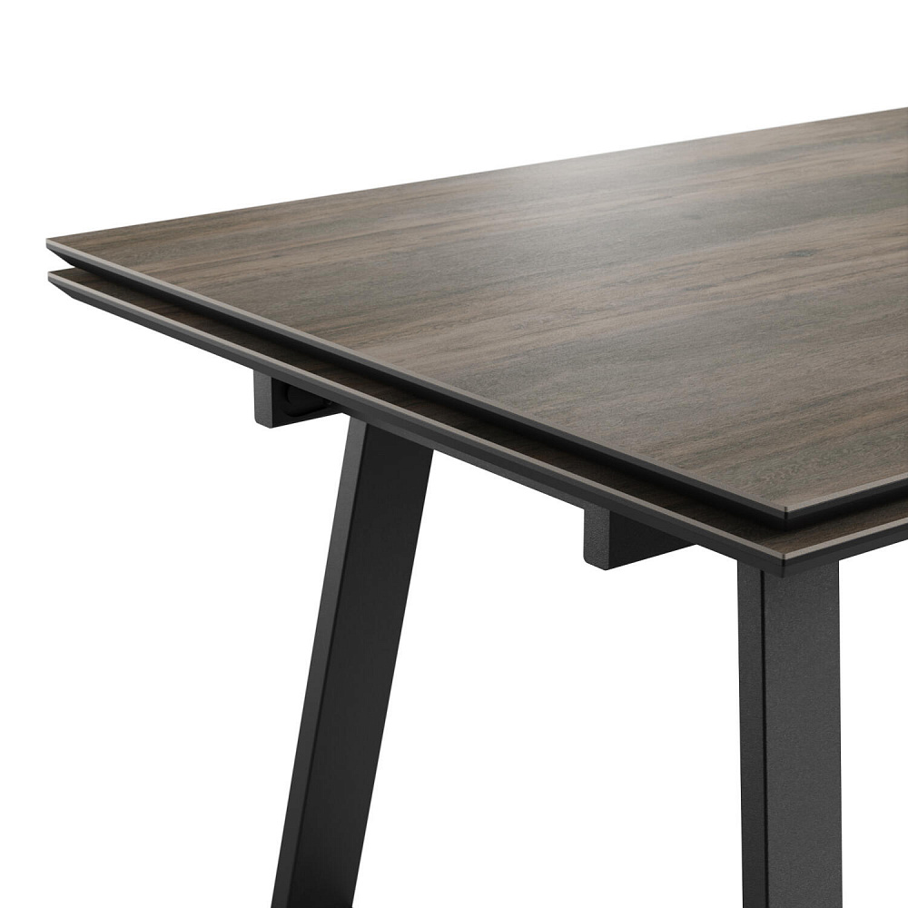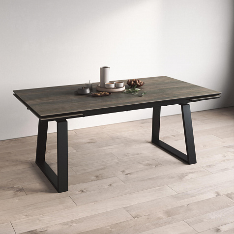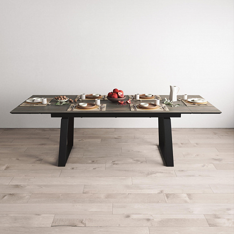 Раздвижной обеденный стол «Чарльз» станет украшением обеденной зоны. Столешница с покрытием из натуральной керамики смотрится эффектно и дорого. Практичность и функциональность не уступает шикарному дизайну. Поверхность столешницы способна выдерживать удары и не подвержена появлению царапин. Можно ставить горячие кастрюли и сковороды не опасаясь повредить поверхность.