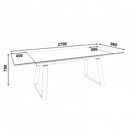Габариты стола в разложенном виде (ВхШхГ): 75 х 270 х 98 см.