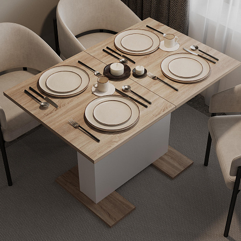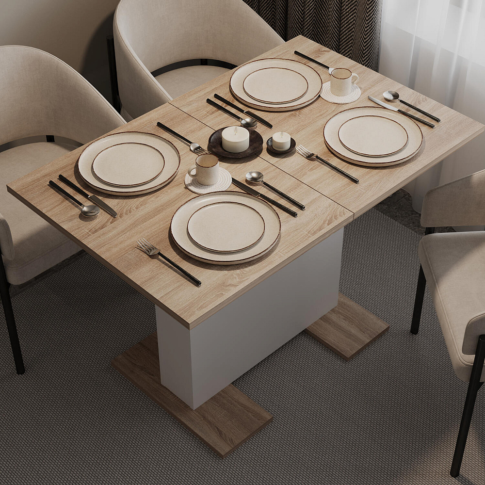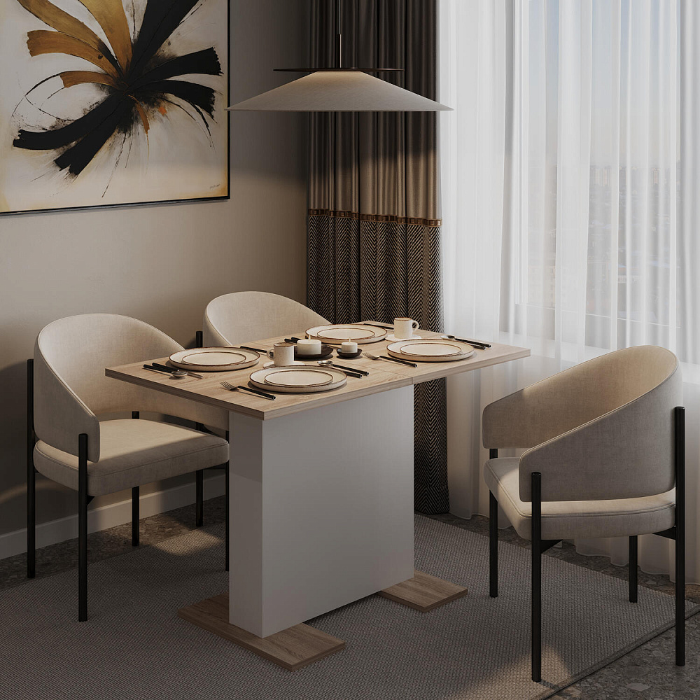 Раздвижной обеденный стол «Дрифт» станет украшением обеденной зоны. Практичность и функциональность не уступает лаконичному дизайну. Благодаря синхронному механизму столешница расширяется на 42 см, что поможет разместить за столом до 6 человек. В сложенном виде стол займет меньше места и подойдет для ежедневного использования.