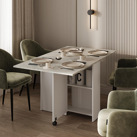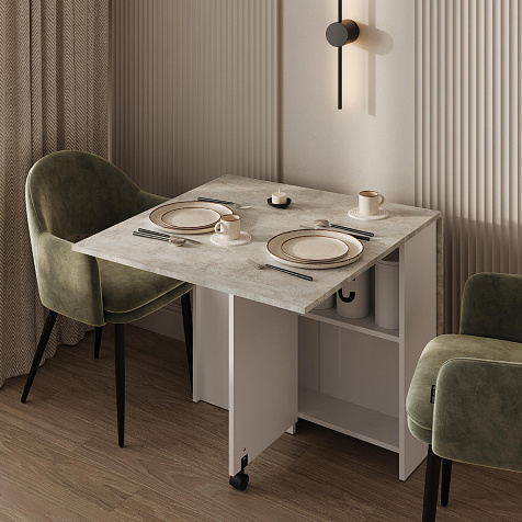 Стол-книжка «Флекс» является универсальным предметом мебели, который может гармонично вписаться и максимально функционально использоваться в любом современном интерьере. Такая модель подойдет для небольших комнат и студий, ведь в сложенном виде стол-книжка занимает минимум пространства и может использоваться как письменный. Для встречи гостей его легко разложить и получить полноценный обеденный стол.