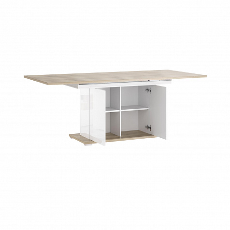Трансформируемая столешница. В подстолье предусмотрены направляющие и дополнительная вставка шириной 50 см, с помощью которых увеличивается общая ширина столешницы.