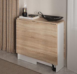 Стеллаж, установленный в нишу, представляет собой неглубокую библиотеку с двумя раздвижными фасадами, которые ходят по одному треку, открывая то одну, то другую секцию.