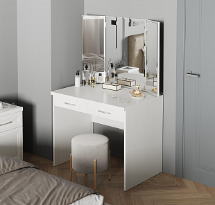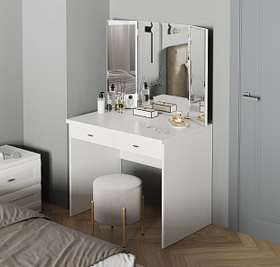 Корпус всей мебели: ламинированная плита в декорах «Алебастр» и «Дуб Гладстон».