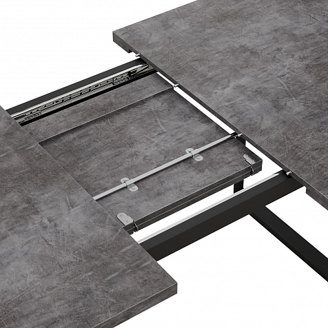 - Раздвижной механизм «бабочка». Боковины столешницы легко раздвигаются в стороны при помощи бесшумных направляющих, из подстолья вынимаются и разворачиваются две вставки из ЛДСтП, в результате чего ширина стола увеличивается на 40 см.